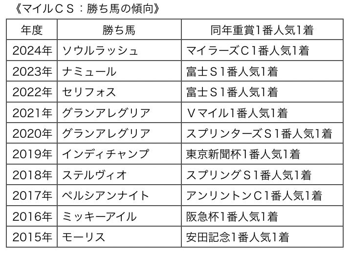 この傾向を見る限り、マイルCSはリピーターに要注意と考えるべきですね。