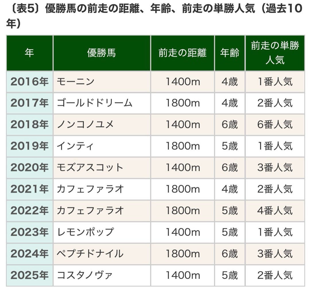 このデータは2025年のJRAホームページに掲載されていたデータをアレンジしたものですが、過去10年間のフェブラリーS勝ち馬にはほぼ以下の傾向がありました。