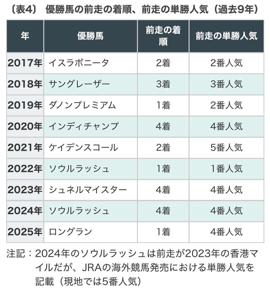 (もちろん昨年のロングランのように、7歳馬で勝利するケースもあり、年齢だけで極端に割り引くのは危険だとは思いますが…)